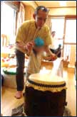 練習している場面をうさぎ組全員で見る機会はなかったのですが、ある日遠山園長さんが荒馬で使う太鼓をうさぎ組に持ってきてくれました!