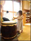 目の前の太鼓に初めに興味を持ったのはMちゃん!なんと歌を歌いながら太鼓を優しくドンドンと叩いていました♪