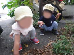 出発のときに、りす組のお姉さんが手を繋いでくれて、嬉しそうです。いつもよりたくさん歩いていました。東工大の広場には どんぐりがたくさん落ちています。一つ拾って落として 追いかけて、また拾って追いかけて、繰り返しているうちにそれが楽しくなってきて転がして遊んでいました。