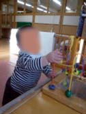 保育園生活にも慣れてきて、お部屋の中を自由に動いたり、玩具を手にとっています。