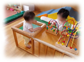 父母と離れて過ごす不安、新しい環境への不安に泣けてしまう子がいたり、ビーズコースターや音の鳴るおもちゃに興味を示し遊ぶ子どもたちです!新しい環境で過ごす子ども達にとって安心できる場所になるように、子どもの思いに寄り添いながら保育をしていきたいと思います。