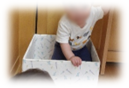 『またぐ』ことができるようになった子は箱に出入りしています。一人で立てることができるようになった子はすくっとその場で立ち上がって、「みてー!」といわんばかりの表情です。