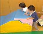 最近高い所に興味が出てきた子は、前は大人のひざを踏み台にしてウレタン山の急斜面を登っていましたが、ついに踏み台がなくても登れるようになりました!手足の力がついてきたね♪
