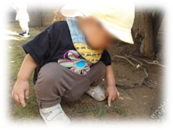 遊歩道やコンコン様にお出掛け!コンコン様ではアリの観察に夢中。「あった~」と指差しをしながらアリの後をまてまてする姿や不思議そうに目で追いアリが近付いてくると…保母のところへ。でも気になって(笑)また空を見上げて「おっ!」飛行機を見つけ、飛行機が見えなくなるまで視線を送ったり、お散歩中の犬を、見つけると「ワンワンった!」(わんわん、いた)とみんなに知らせてくれます♪