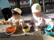 他の女の子はいろいろな物をお鍋やお茶碗に!保育者の「ちょうだいな」に『どーぞ』とお裾分けしてくれるのでした。生活の中でのやりとりが遊びの中で表現され、つもりや見立ての遊びに繋がっていきますね!!