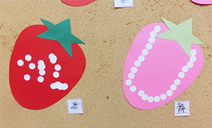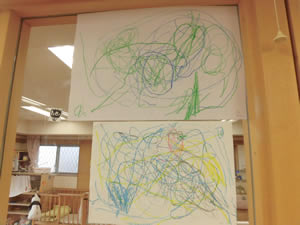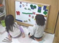 昨年からりすのお部屋に設置されたマグネット板で遊んでいます。子ども同士でゴニョゴニョと話しながら、次々にマグネットを貼り、 顔を見合わせては笑い合い2人の世界が繰り広げられていて微笑ましい場面でした。
