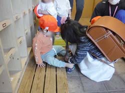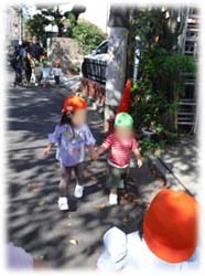 そこで保母が「今日は○○ちゃんとつなぎたいんだって」「こっちの手はどうかな?」とそれぞれの思いを繋げて、気持ちよく出発ができるようにしていっています。