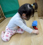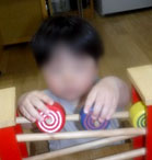 Dちゃんは、ひよこ組(0歳児)のポットン落としが好きで繰り返し楽しんでいます。