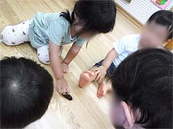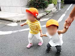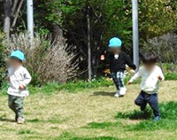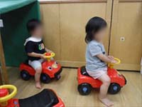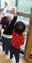 Aちゃんは、最近お友だちと手を繋ぐことを楽しんでいます。Bくんに「つなごう~」と手を差し出し、Bくんが繋いでもらえると嬉しそうにしています。遊歩道内は〝保母とは繋がない″と2人だけで繋いでいました。少しお姉さんになったように感じた場面でした。