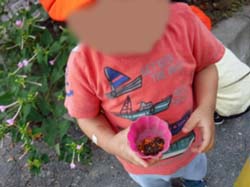 陽射しも和らいできたので、今月はたくさんお散歩に出かけて、秋ならではの楽しみも見つけたいなと思います。散歩先ではミミズやダンゴ虫、バッタを見つけました。「こわーい!」言いながらも興味津々の子どもたち。