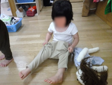 生活の場面でも、ズボンを履いてみることはできるけれど「保母がやって」とCくん。