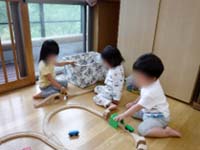 8月たくさん水遊び、プールを楽しんだ子どもたち。その後の時間は、うさぎ組(2歳クラス)の部屋を借りて遊んでいます。