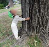 芝生の周りには大きな木も沢山ありました。中でも一番太くて大きな木に夢中な子も。しばらくその場を離れず、しがみついていました(笑)