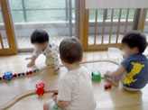 夏を超えて子どもたちの急激な成長が見られるようになりました。遊びや、生活の中で、友だちと一緒に遊んだり、楽しいなどの気持ちを共有しています。また、好きな遊びに熱中できる姿も増えてきて、電車を長くつなげたり、積み木を高く積んだりする姿が見られます。