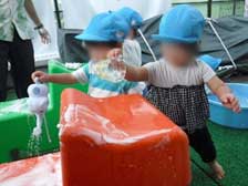 保育園では楽しい水遊びが始まりました。