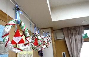 街ではジングルベルが聞こえるようになりました。お部屋には、クリスマスのリースや雪の結晶を飾りましたよ。