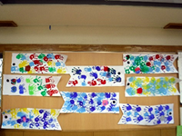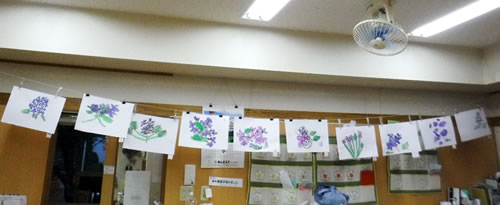 かば組はクレヨンでお花を書いた後、絵の具を塗り紫陽花を作りました。