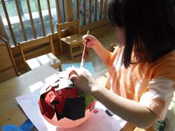 最近は、紙や新聞、ペン、はさみ、のり、テープ等を自由に使って製作に夢中!