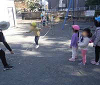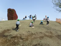 散歩では、近くの大学の広場を借りて、転げまわったり、かけっこ、綱引きなど、体を存分に動かして遊んでいます。