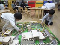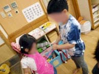 お部屋での遊びも、3歳児・4歳児・5歳児の子ども達が入り混じって、好きなコーナーで好きな遊びを楽しめています。