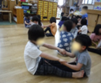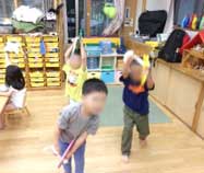 保「どうやって鬼決める?」にかば組「おにきめやるよ!」保「鬼決めできるの?」に「うん!○○くんがやってたから」とみんなの足を集めて鬼決めをしてくれました。鬼決めで決まった鬼には鬼がいいと言っていた子も文句を言いません!上の子たちからいろんなことを吸収しているなと思います。