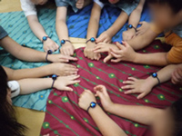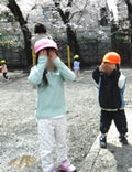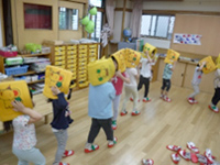 今年度から、3~5歳児クラスを2つのグループにして、異年齢保育を中心に生活を始めました。 グループ名は、「ほし」と「つき」。別々の公園に散歩に行く日もあり、合同で活動する日もあります。