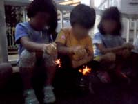 まつぼっくりやどんぐりを集めて、バーベキューを楽しむ子もいます。