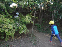 子ども達は秋の自然を取り入れながら、ごっこ遊びを展開させています。東工大の斜面では傾斜をうまく利用して、海賊ごっこ。宝を探そう!恐竜の骨もあるかも!と想像豊かです。
