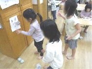 以前までは、毎日の日課(散歩先の公園等)を保母が中心となって決めていましたが、最近は、帰りの会の時間に行きたいところ、やりたいことの意見を出し合ってみんなで一週間分の日課を組み立てています。