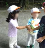 幼児の生活に慣れてきたように見えても、まだまだ年上の子と会話をしたり、遊んだりするのにちょっと緊張するかばぐみさん。