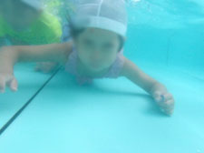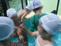 そして三日目。いつものよう保母の背中に乗っていると、 突然自分から保母の身体を離れ、両手を水底について、なんと ! ワニ泳ぎをしだしたのでした !最初はドキドキした表情で、でも 、余裕が出てくると笑顔で「できたよ!!」と嬉しそうに、気持ち 良さそうに泳いでいました!「やってみたい!」というRくんの 気持ちが自分で一歩を踏み出して、乗り越えた瞬間でした。