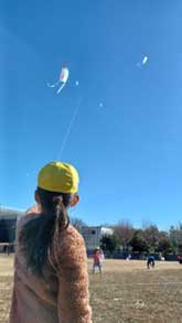 凧あげに行きました!ぞう組、きりん組は大きな凧に絵を描いて作り、かば組はくるくる凧を作りました。ぽかぽか広場での凧あげ、きりん・ぞう組は全員、持ち手の糸を全部出して、一番高くまで上げることができて満足度高い体験になったのではないでしょうか!持ち手をかば組に持たせてくれる子もいました。高く凧があがると、「すごーい!」とかば組が上の子たちの姿を応援したり、褒めたりしていました。その言葉に、嬉しそうなきりん・ぞう組の子たち。