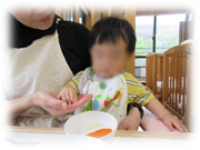 今のひよこぐみはみんな担当の大人と1:1で食事を進めています。担当と関係を作っていく中で食事も大切な時間の一つです。試行錯誤しながら関係を作っていっています。