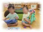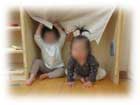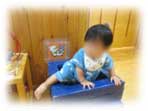 部屋には箱を常設しています。Nくん、Hちゃんが自分で入ることができるようになりました。また、箱の中はちょうどよい自分だけのスペースになっています。心も成長してきた子どもたち。“自分だけ!”と、自分だけのスペースも求める時期です。子どもたちにとってはホッとする空間となっています。