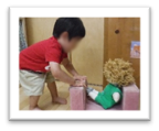 落とす・入れる・出す・つまむ・引く・押す・回す等様々な手先を使って遊べる環境を設定しています。イメージ通りにできた子どもたちは達成感から笑顔が見られます!“できない”が“できた”に変わる瞬間を見逃さず、子どもたちと一緒に喜びを共有していきたいと思います。
