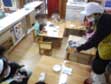 さっそく自分たちの人形と一緒にごっこ遊びが始まっていますよ♪ ままごとコーナーでは椅子に座らせて、「どうぞー」とご飯を口に運んであげます。ジュースも持ってきて一緒にゴクゴク…人形に笑いかけて、お世話を楽しんでいます。布の上に人形をのせて「じごくごくらく~♪」のわらべ歌も。普段保育者が子どもたちと楽しんでいる遊びや、家族の家での姿を真似っこして、自分たちの遊びにつなげていっています。衣服の脱ぎ着や食事など人形のお世話をする中で、身の回りの事にも興味が出てきて、自分の事もやってみよう!という気持ちが育っていきます。りす組のみんながこれから自分の人形とどう関わっていくのか、楽しみですね♪