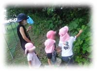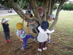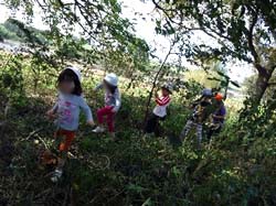 遊歩道では、クヌギの実が落ちています。大きなどんぐりです。まだまだ落ちている数が少ないのですが、それを手にできた子は、宝物のように大事に持ち帰っています。ヒガンバナの赤に魅せられたのは、○○くん。「みてみて~!あそこ、きれいだよー!!」と、指の先を見ると、まっ赤なヒガンバナがたくさん咲いています。美しいものを見てきれいと素直に表現できること、ステキですね。秋ならではの遊びを満喫していきたいです♪