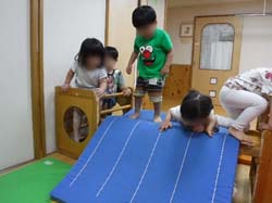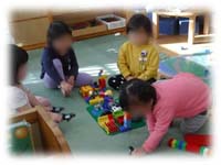 12月の終わり頃から、幼児の部屋へ遊びに行く機会が増えました。午後の時間に5~6人で遊びに行っています。慣れない場所ではありますが、うさぎ組にはない遊具がいっぱい。子ども達にはとっても魅力的のようです。部屋に入るとすぐに大人から離れて遊びに行っています。