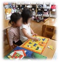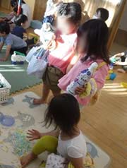 異年齢がらみでお知らせがひとつ。これから主に夕方の時間、かば、きりん、ぞう組(幼児クラス)の部屋に進級するための心の準備を兼ねて遊びに行きます。これからお兄さんお姉さんとの交流がますます増えることでしょう。