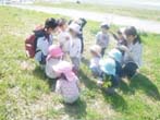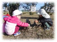 暖かい春の風に誘われて、虫たちも活発に動き始めた様です。都市大や支援学校校庭では、子どもたちの「あっ、アリさんいた!!」「ダンゴ虫はどこ?」「ちょうちょだ」「てんとう虫だ」という声が。ありの巣を見つけては、観察してお友達に知らせたり、エサを運ぶありを見ては、そっと見守る様子も…虫と関わりながらも、しっかり子ども達同士が喜びや楽しみを共有していて、とても良い雰囲気のうさぎぐみです。
