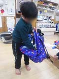 着替えもほとんど自分たちで出来るようになりました。今ではリュックから好きな洋服を選んでいます。「今日はパンツ汚れてないから替えなくていいかな」「その洋服かわいいね」など友だち同士で和気あいあいとお着替え。脱げない時は友だちに助けを求め、袖を引っ張ってもらう姿もあります。