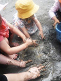 手は「第二の脳」といわれています。さまざまな感触に触れることは子どもたちにとってとても良い刺激になります。これからもたくさんの素材に触れていきたいです!
