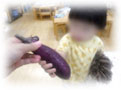 大きな実をつけたナスを7月中に2回収穫しました。1回目はおやつの時にごま油、醤油、砂糖で。2回目は食事の前に、砂糖と味噌で味付けをして、みんなで食べました♪