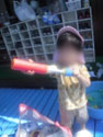 水鉄砲ではオバケ退治!!カップを的にして遊んでいたので、部屋に帰って、皆でオバケづくり。大きなオバケが完成し、みんなでオバケを倒そう!と気合を入れて戦っています。
