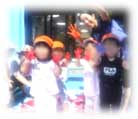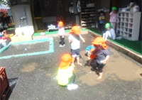水鉄砲に自分たちで器用に水を入れられるようになり、びっくりしました。水を入れたら、いざ妖怪退治へ!幼児組が作ってくれた閻魔やぬりかべなどを次々と倒していきました。