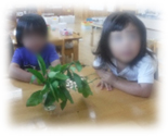 お庭のみかんの木についていたアゲハの卵と、れおちゃんのお家から頂いた芋虫を合わせて、合計4匹の飼育をしています。卵から生まれた小さな黒い芋虫は、脱皮をして緑の幼虫になりました。あっという間に成長し、うんちも大きくなっていくその変化も面白いです。葉っぱを毎日補充しているのですが、4匹ともなると食べるスピードも早かったです。さなぎになった子はいつ孵るのか、毎日見守っています。お母さん・お父さんも、是非お迎えの際に観察してみてください!