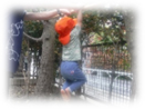 最近は、夕方に全員でお庭に出ることも多くなってきました。先にお庭に出ていた幼児組が、何やら楽しそうな事をしています。覗いてみると、木の棒や台を使って運動あそびをしていました。一本橋でバランス感覚を養い、棒つかまりで手指・腕の力をつけるなど、目的に合わせた遊びです。うさぎ組も気になって近付きますが、お兄さん・お姉さんが多くて緊張の様子です。そんな子どもたちの手を握り「一緒にやってみる?」と誘うと、勇気を出して「やってみる」との返事が!うさぎバージョンの簡単な設定にしてもらい、見事にクリアしました。楽しくて「もう1回」とやるうちに、他にも見ていた子が“私も”と、列に並んでいきます。
