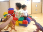 夕方も暑くなり、庭や外に出られない日も出てきました。そんな日はホールと部屋に分かれて好きな遊びを見つけてじっくり遊んでいます。ホールでは、こじか組と一緒に恐竜のフィギュアを並べたり、ごっこ遊びを楽しんだりしています。またデュプロもあり、積み重ねたり、好きな人形を見つけて車に乗せて走らせたりしてじっくり自分の世界で遊んでいる子が多いです。