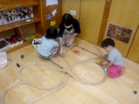 このところ、連絡帳に「動きがダイナミックになって怪我が心配です!」「一時も止まっていません」「体力おばけです」というような記載が増えてきました。3歳になる、または向かっていく子どもたち、体も大きくなりこれからどんどん体を大きく使えるようになっていきます。保育園でも運動遊びで楽しみながら体作りをしていますが、同時にこの時期は、視覚からの情報を手指に伝えて細かな操作をする遊びも大切です。心を落ち着けて自分をコントロールして丁寧に体を使っていくことは、怪我を防いだり、じっくり自分と向き合うことにも繋がります。最近の子どもたちの大好きな遊びをご紹介します!