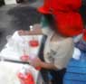 水風船を作ると、「なにこれ~!」と興味津々の子どもたち。プニプニの感触が気持ちよく、握って楽しんでいます。ですが、握りすぎるとパチンと割れてしまう事も…。「あーあ…われちゃった…」と悲しそうな表情ですが、割れない傘袋の水風船をつくると色を混ぜてグラデーションを作ったり感触あそびをして楽しんだりしています。